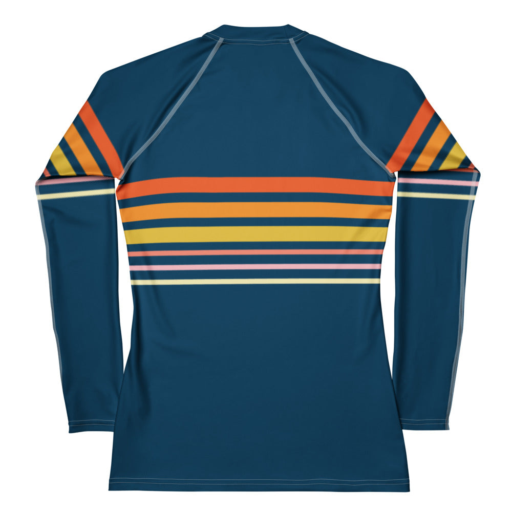 Women's Swim Shirt Rash Guard, UPF 50+ 70s Vintage Stripe, Blue