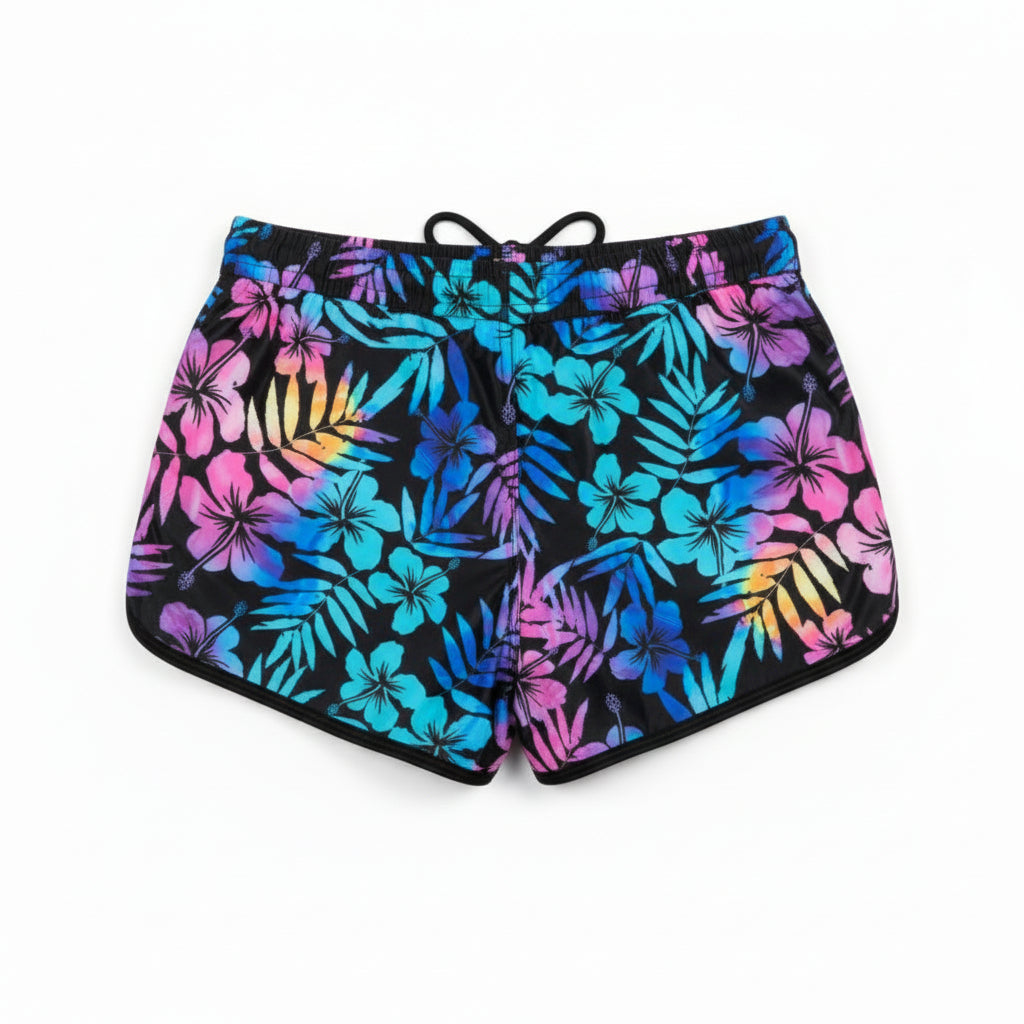 Women's Boyshort Swim Shorts Black Floral Hawaiian