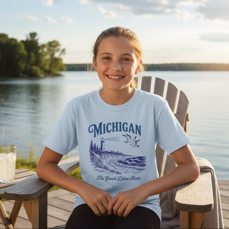 Kids Michigan "The Great Lakes" Graphic Tee – 100% Cotton