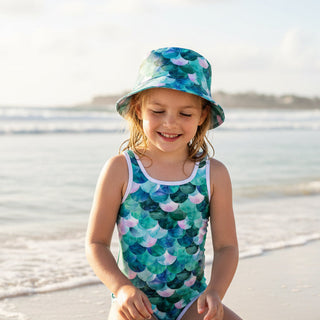 Kids, Youth, Adults Sun Hat, Green Mermaid Fish Scales Beach Bucket Hat