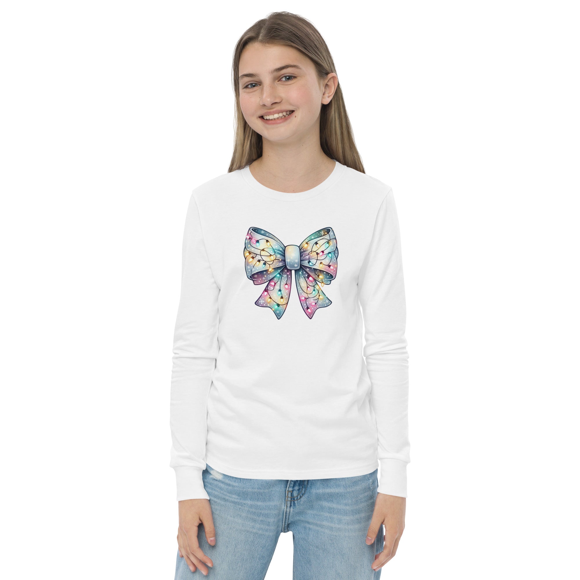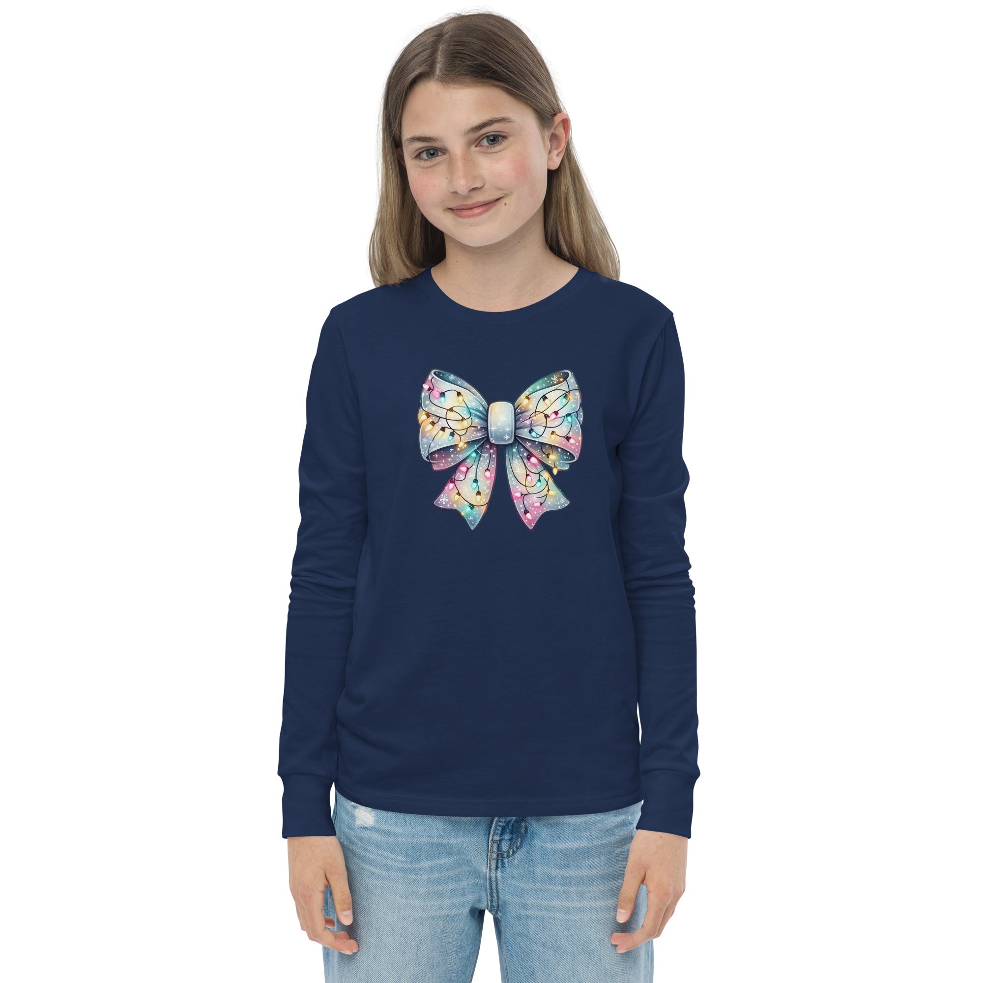 Girls Coquette Christmas Festive Bow Graphic Long Sleeve T-Shirt