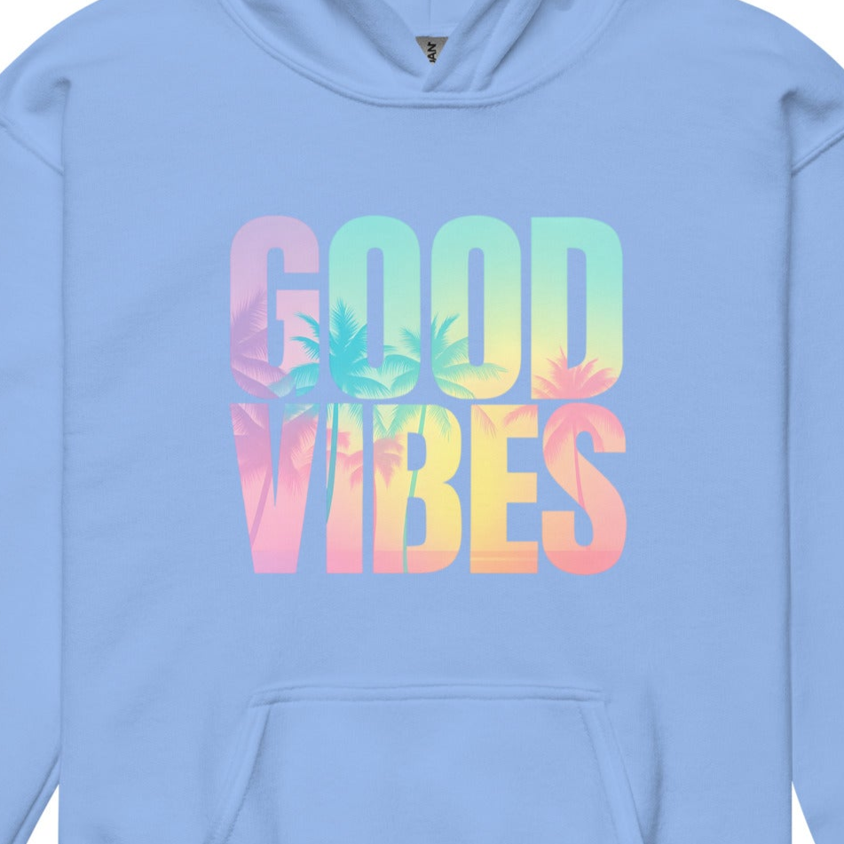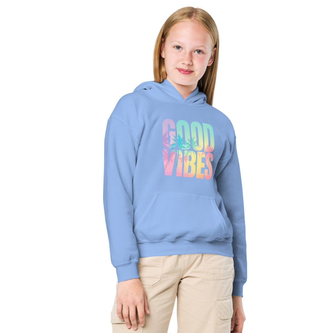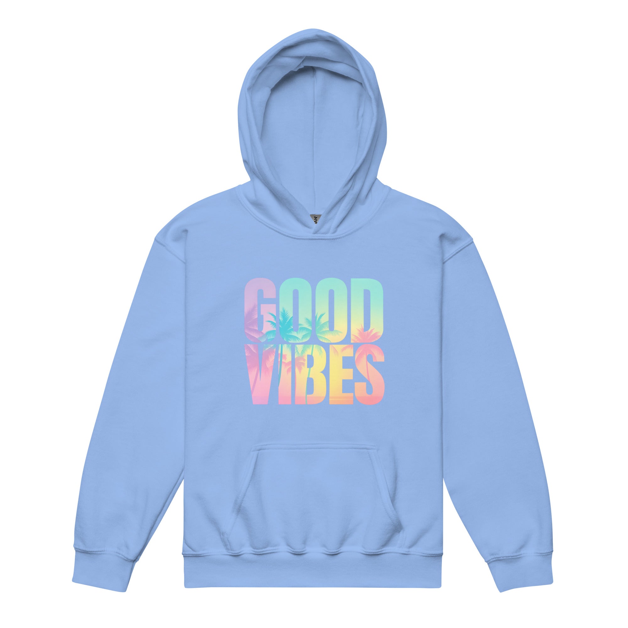Kids Good Vibes Pastel Neon Graphic Sweatshirt Hoodie, Carolina Blue
