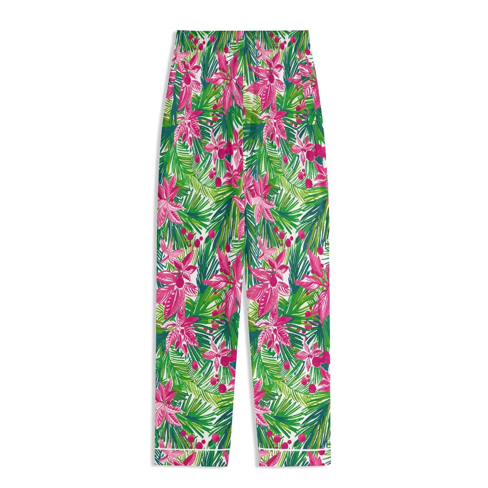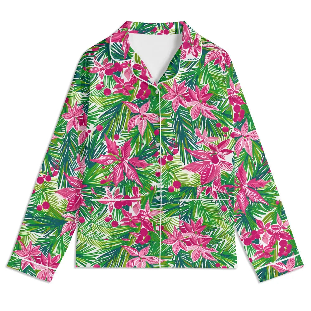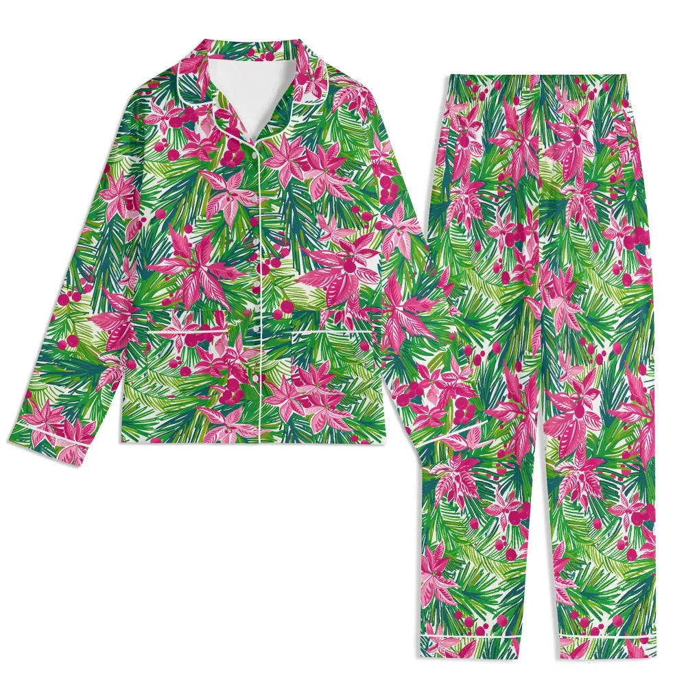 Women’s Hawaiian Tropical Floral Christmas Poinsettia Print Pajama Set - Christmas Cruise Pajamas