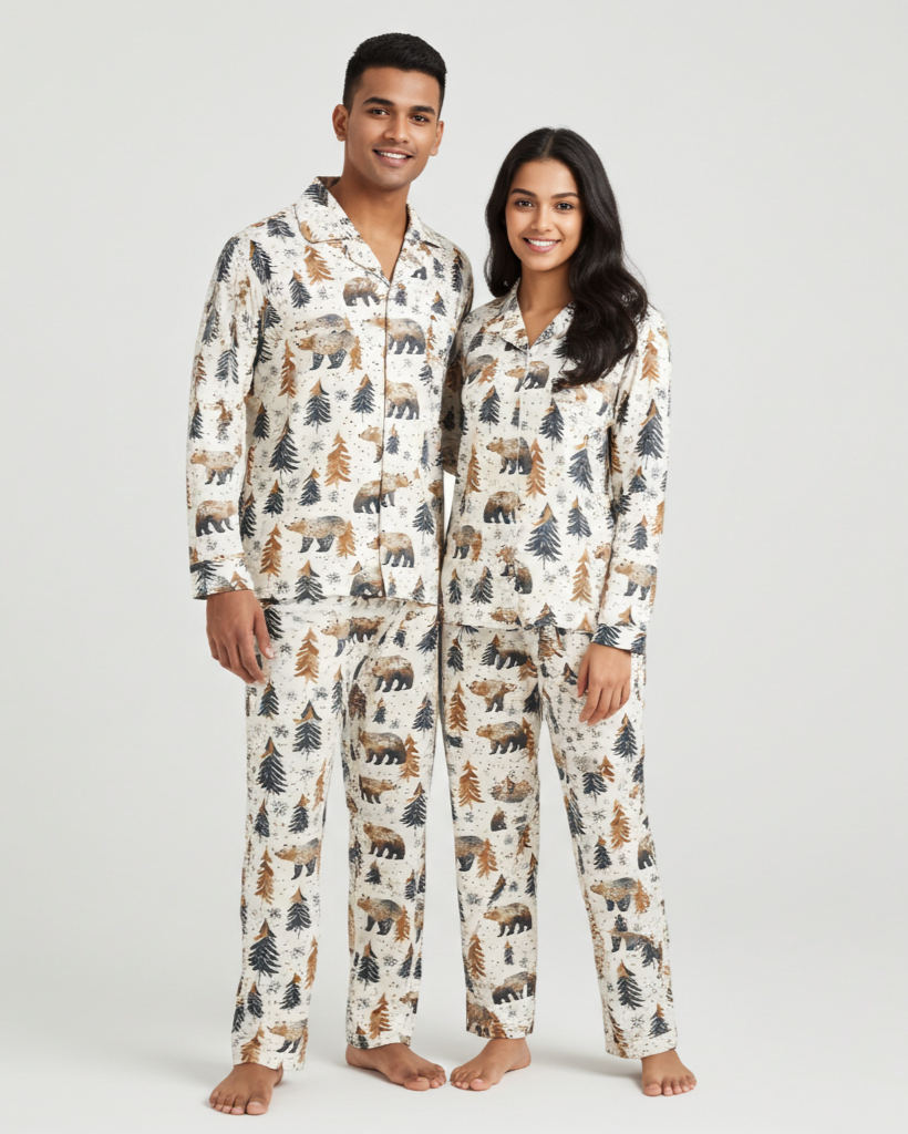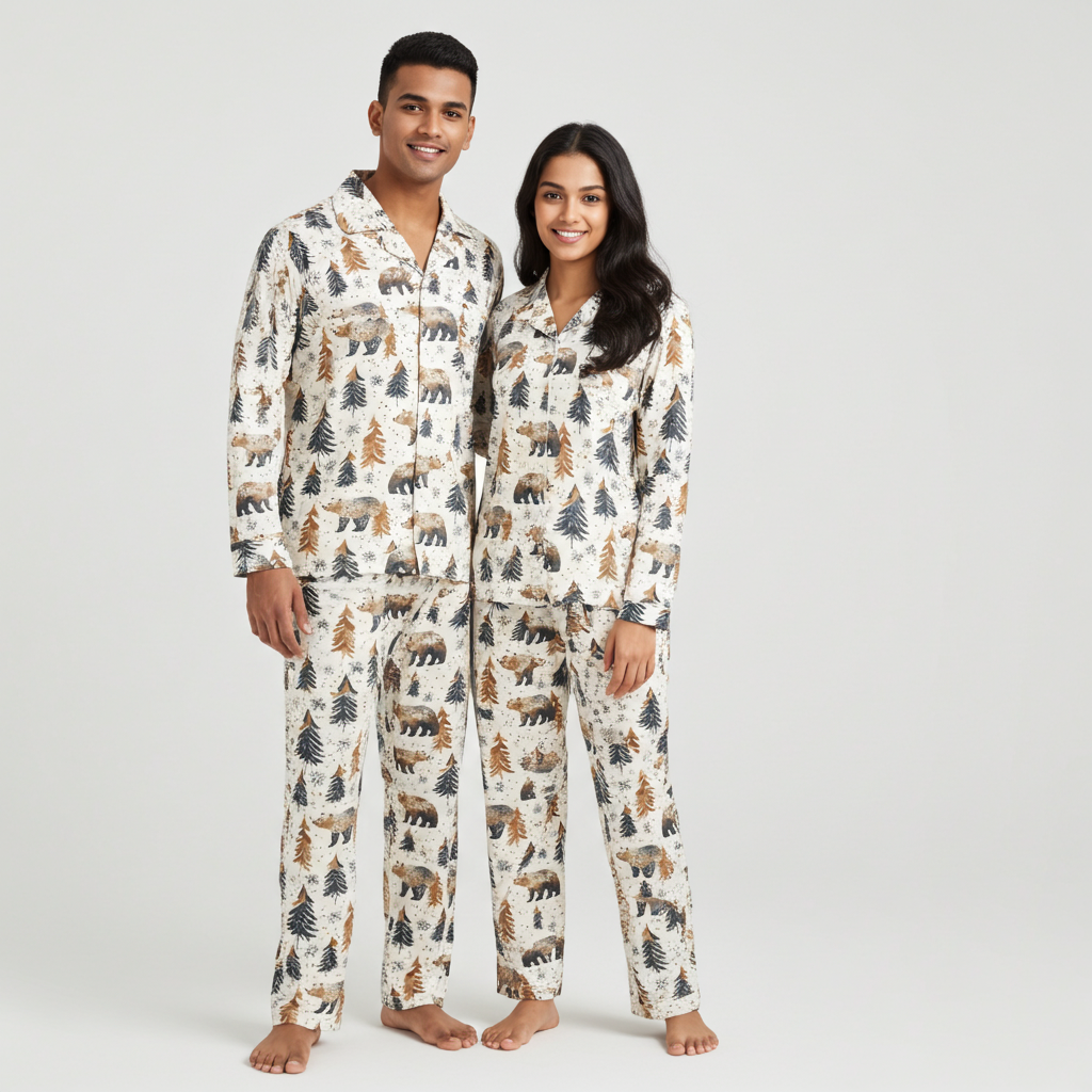 His or Hers - Matching Couples Holiday Pajamas – Nordic Bear Print Unisex Christmas Sleepwear