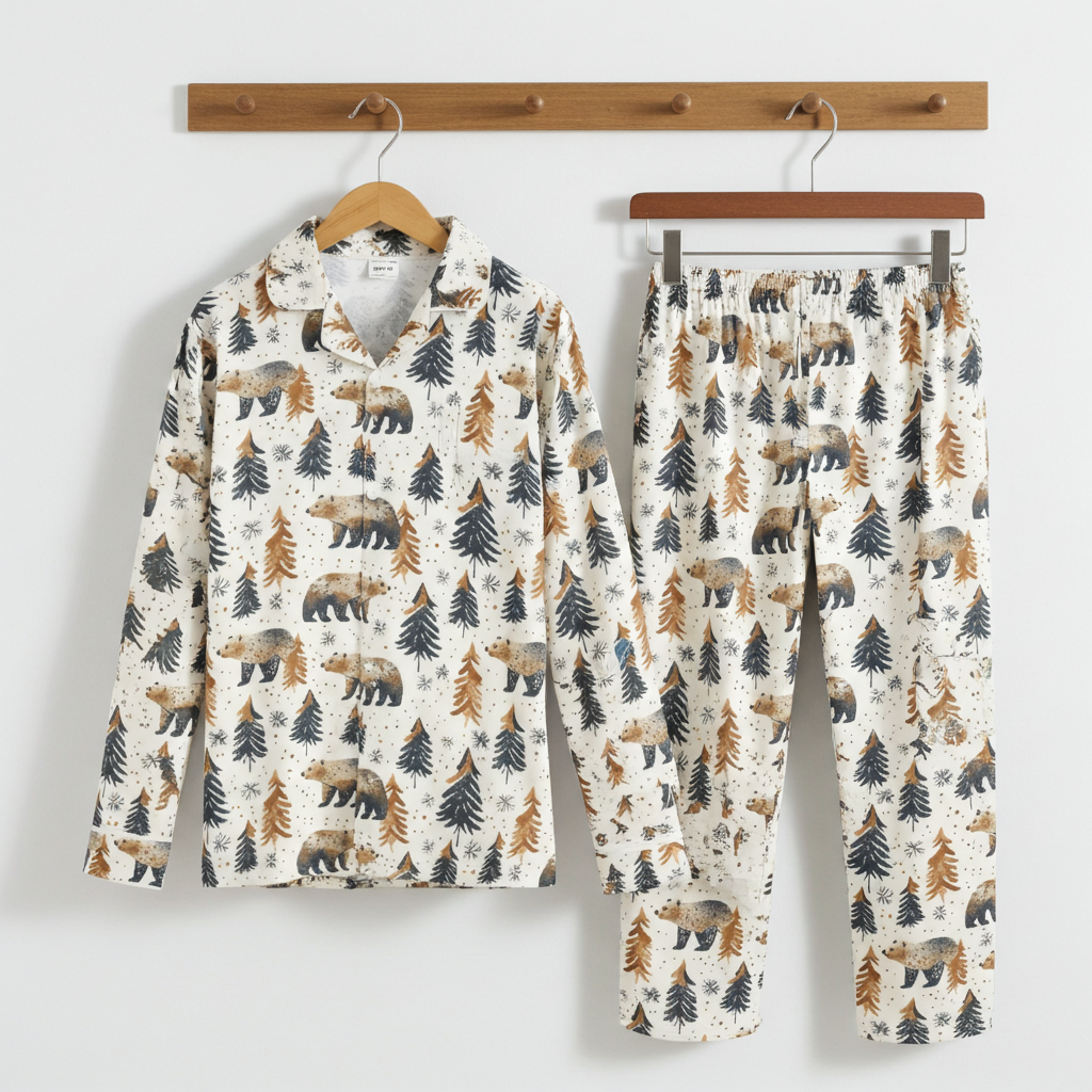 Christmas in the mountains! Stay cozy in style with these Unisex Nordic Bears Pajamas, perfect for fall nights, winter lounging, and festive cabin getaways. Featuring a whimsical bear-and-pine-tree print, these pajamas bring the spirit of the outdoors right into your living room.