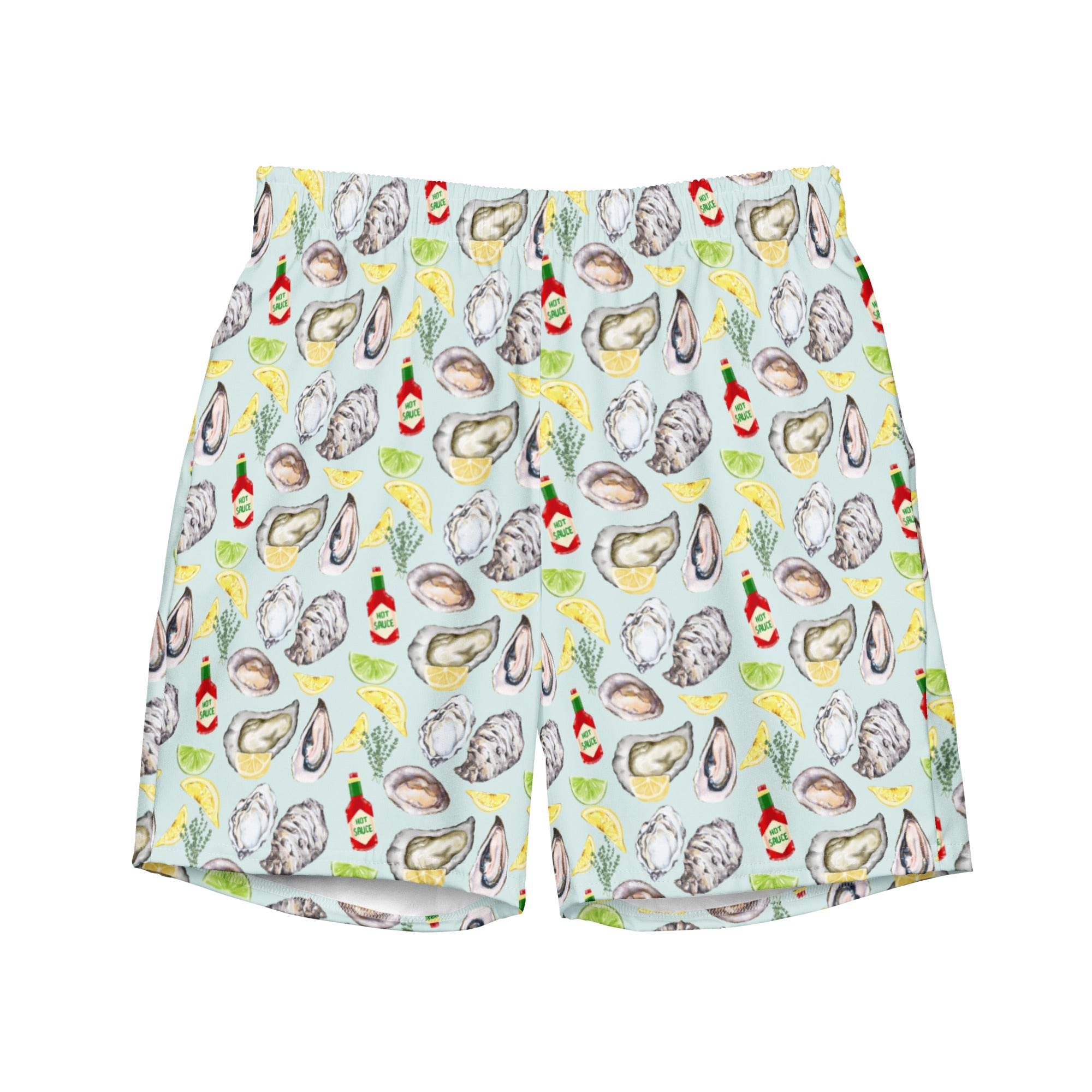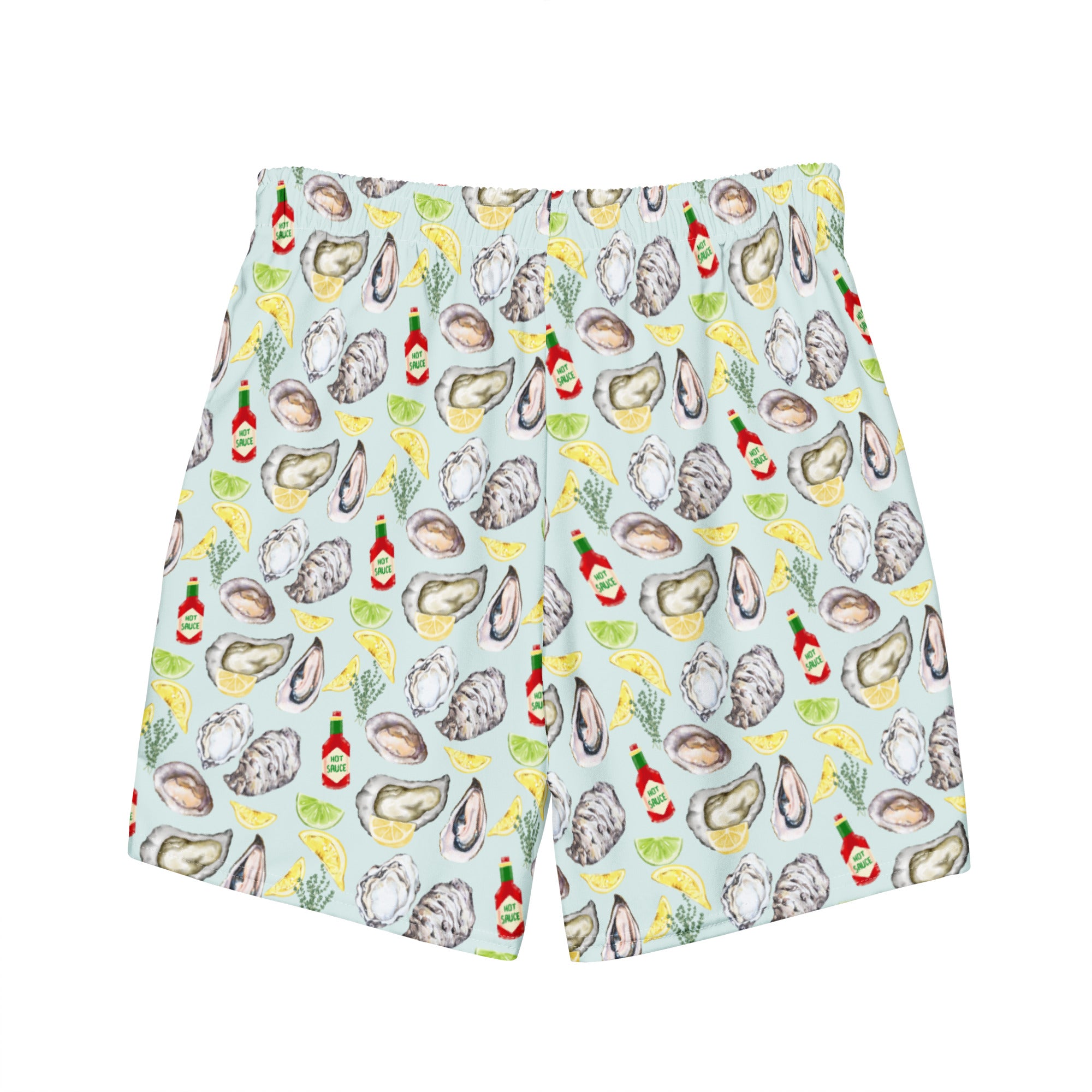 Fun Oysters & Hot Sauce Print Men's Swim Trunks