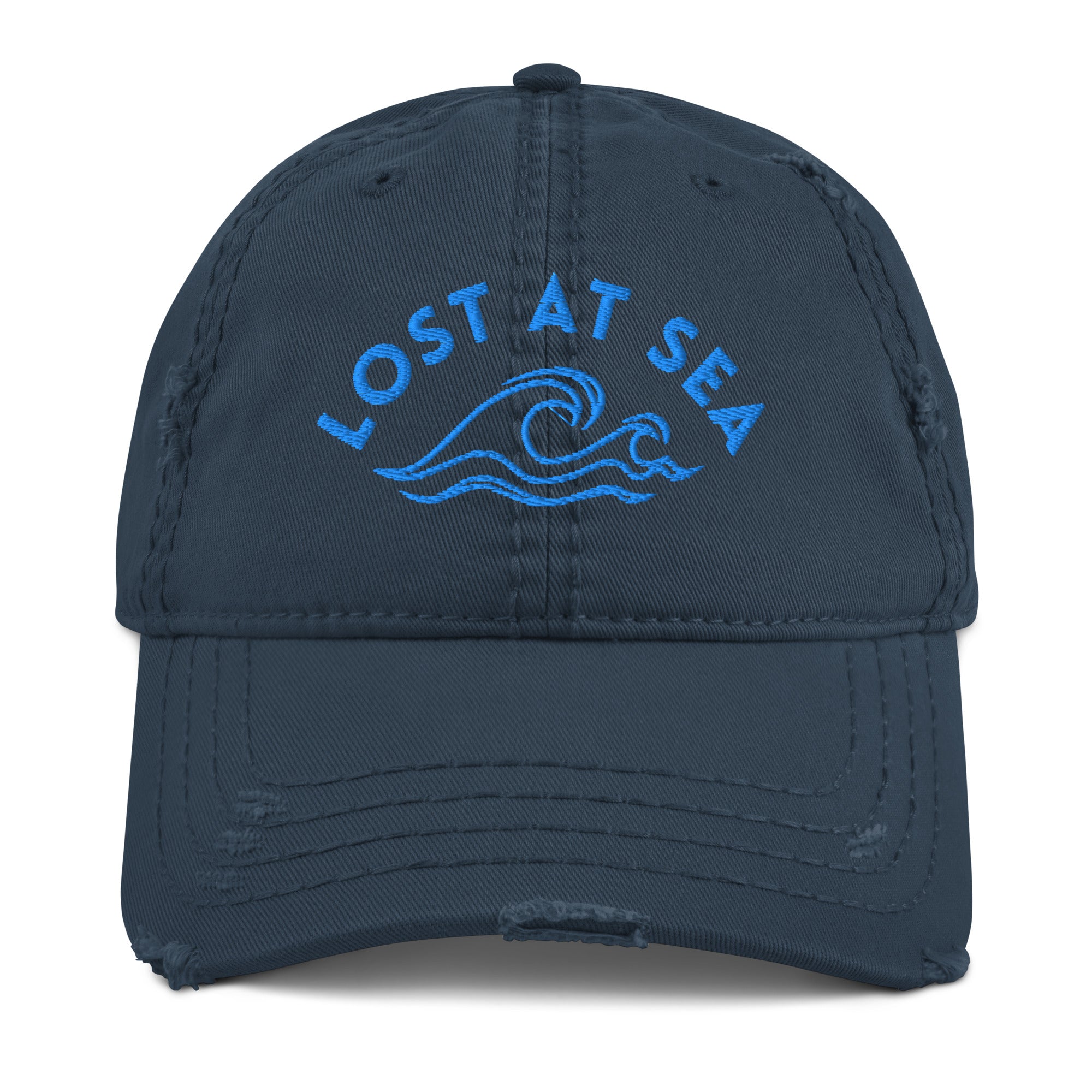 'Lost At Sea' embroidered baseball hat in classic Navy Blue. Expand your maritime headwear collection with this fashionable dad hat. With a slightly distressed brim and crown fabric, it’ll add just the right amount of a worn-in look.