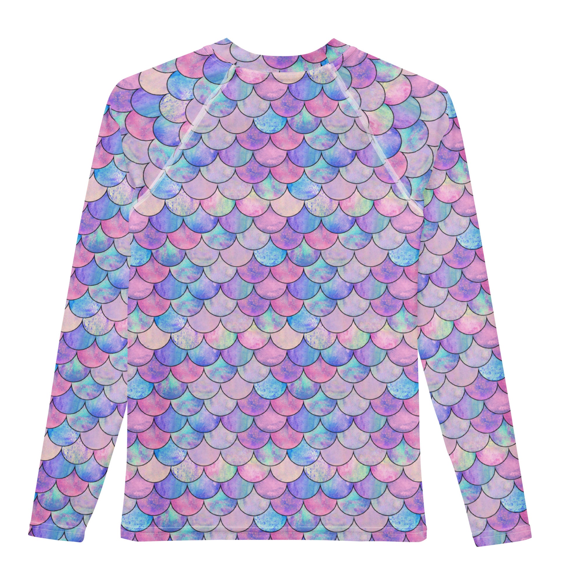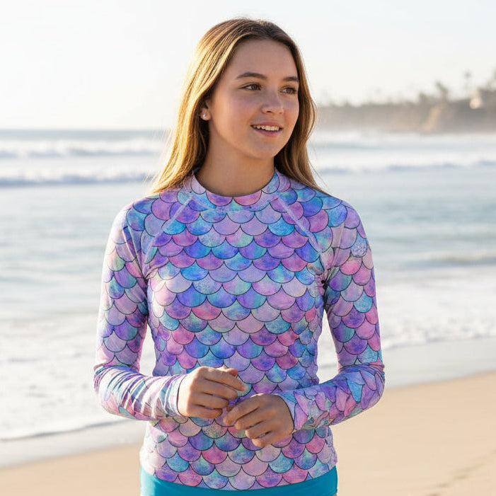 Tween & Teen Girls Rash Guard UPF 50+ (Sizes 8–20) - Pastel Mermaid