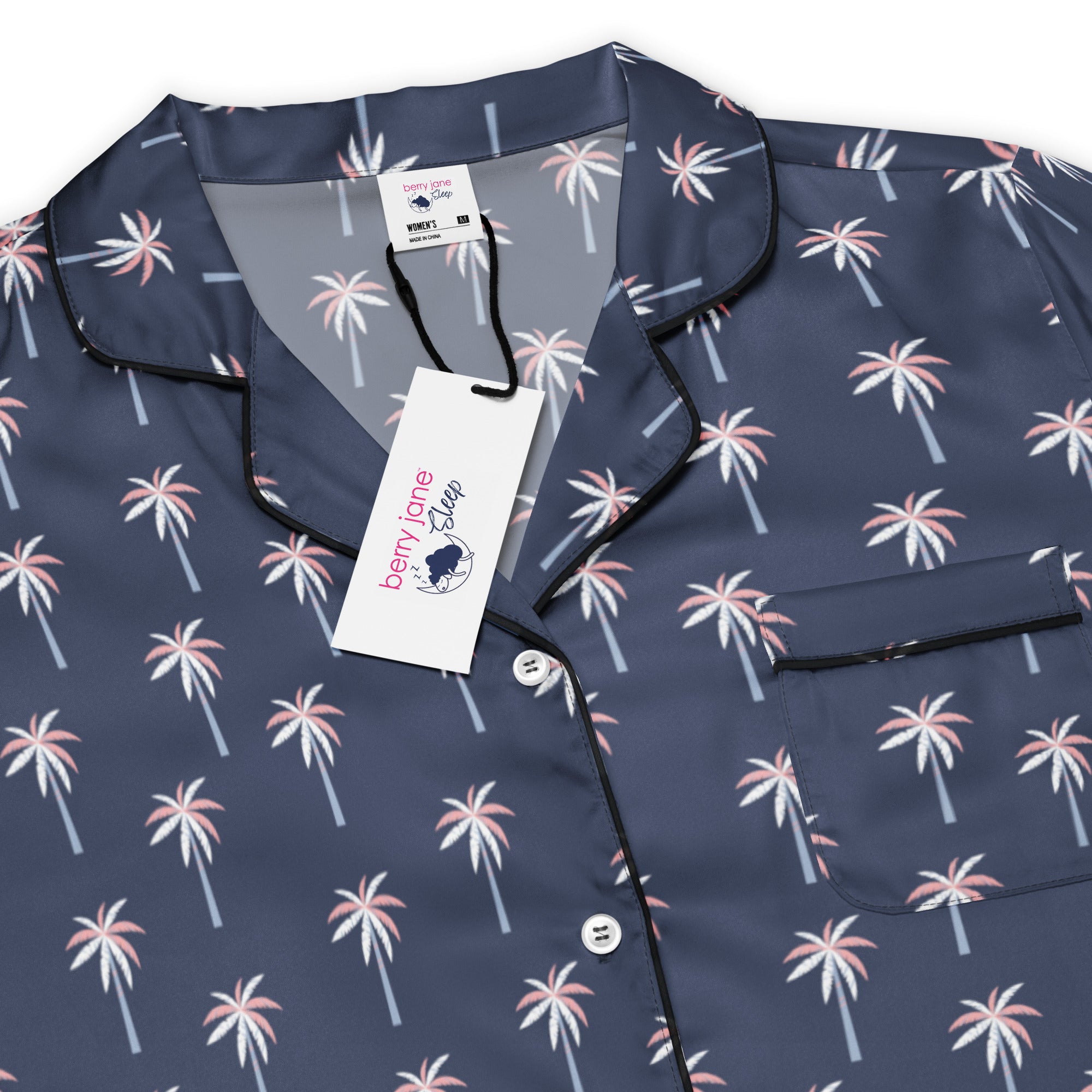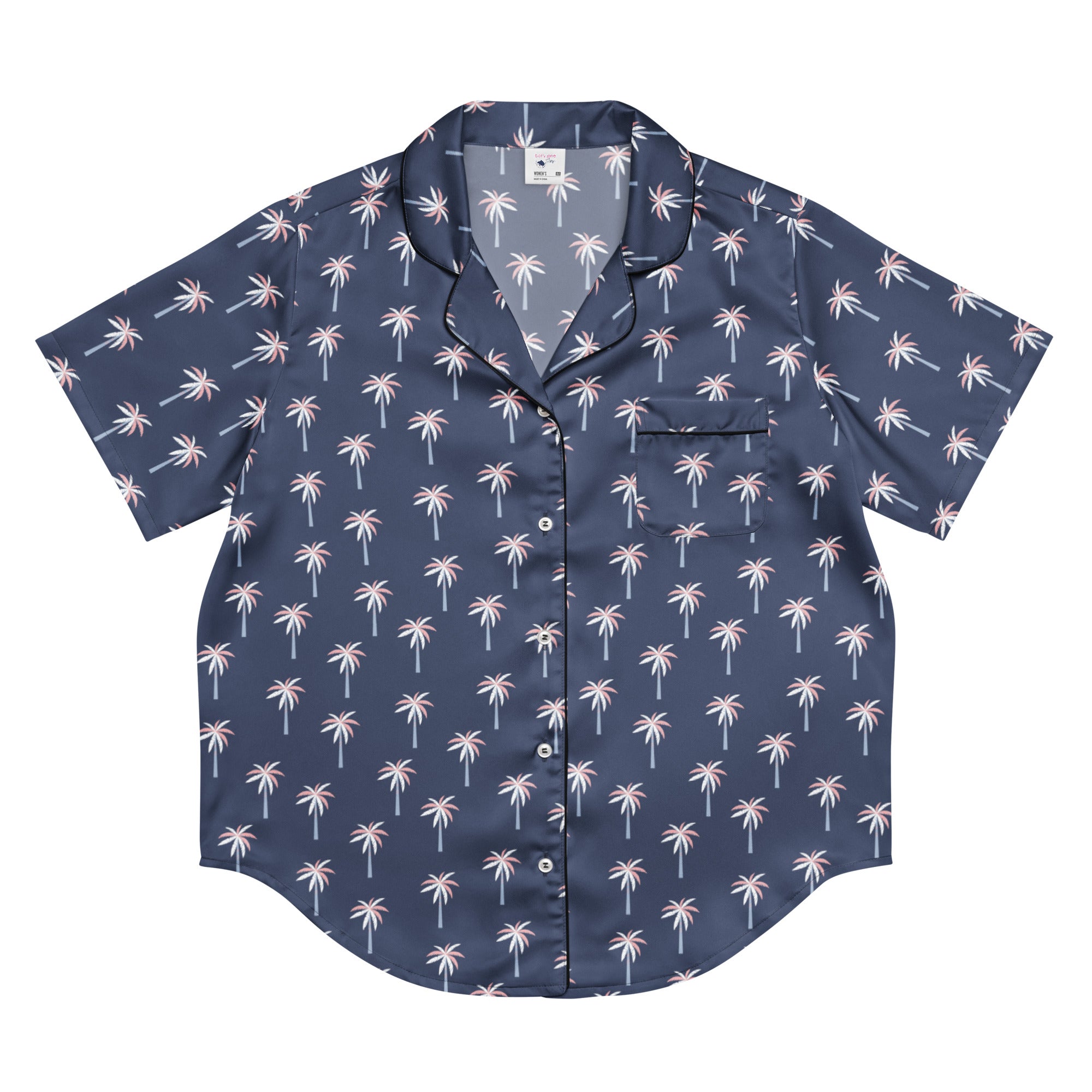 Experience elegance with the Women’s Short Sleeve Beach Silky Pajama Top, adorned with palm tree motifs. Made from luxurious satin, this top is ideal for warm climates and tropical vacations, serving beautifully as both nightwear and chic loungewear. Its smooth fabric ensures you feel comfortable, radiant, and indulgently cared for.