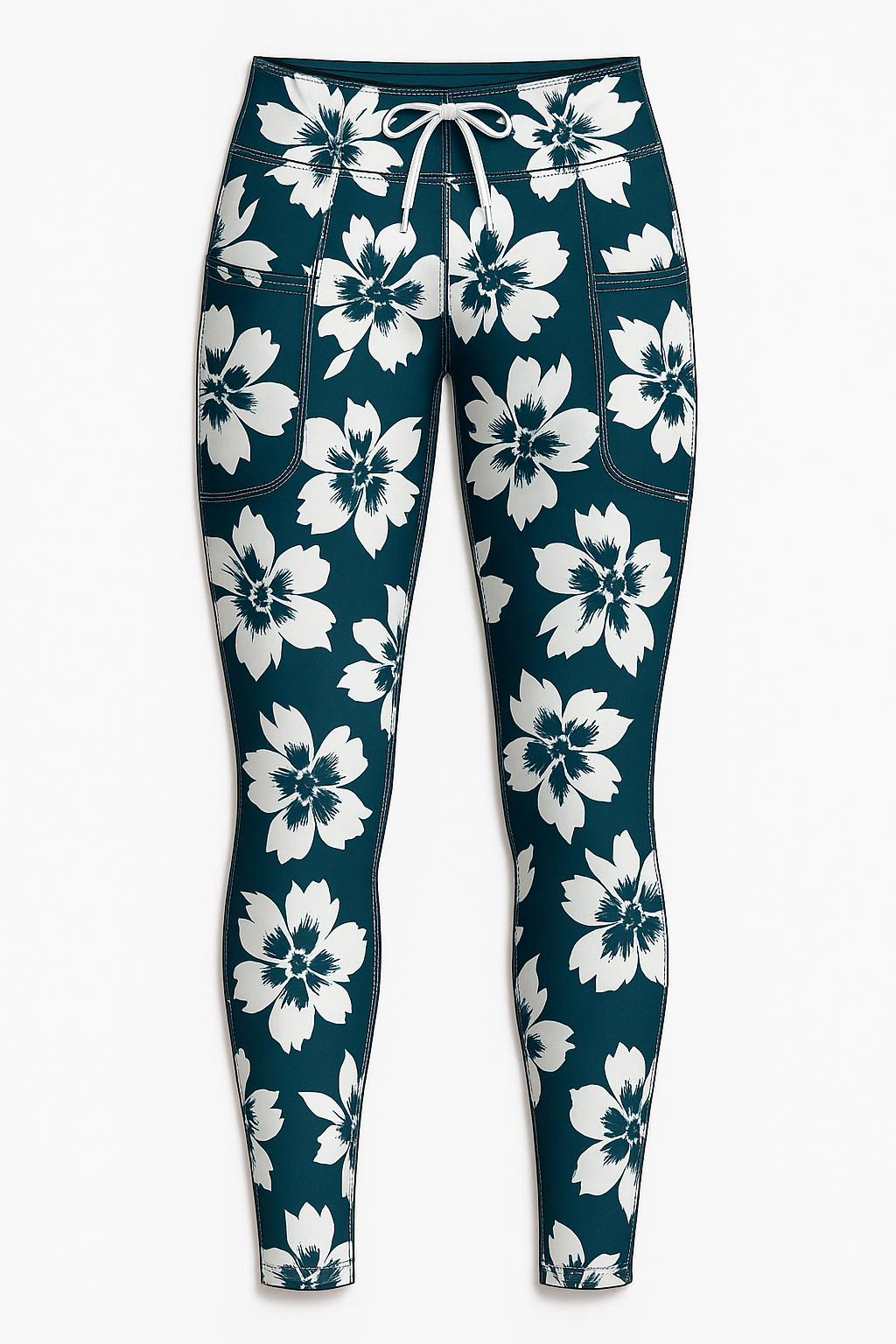 Get ready to hit the waves! Our UPF 50 Blue Hawaiian Floral Swim Leggings have it all: a built-in light inner brief lining and drawstring to keep everything in place, dual side pockets for your phone and keys, and a playful blue hibiscus print that adds a touch of tropical style to your swimwear. Perfect for any water activity, from swimming to paddleboarding to surfing, these swim pants are a must-have for your next beach day. Lightweight and quick drying fabric. Sale/Final Sale Item