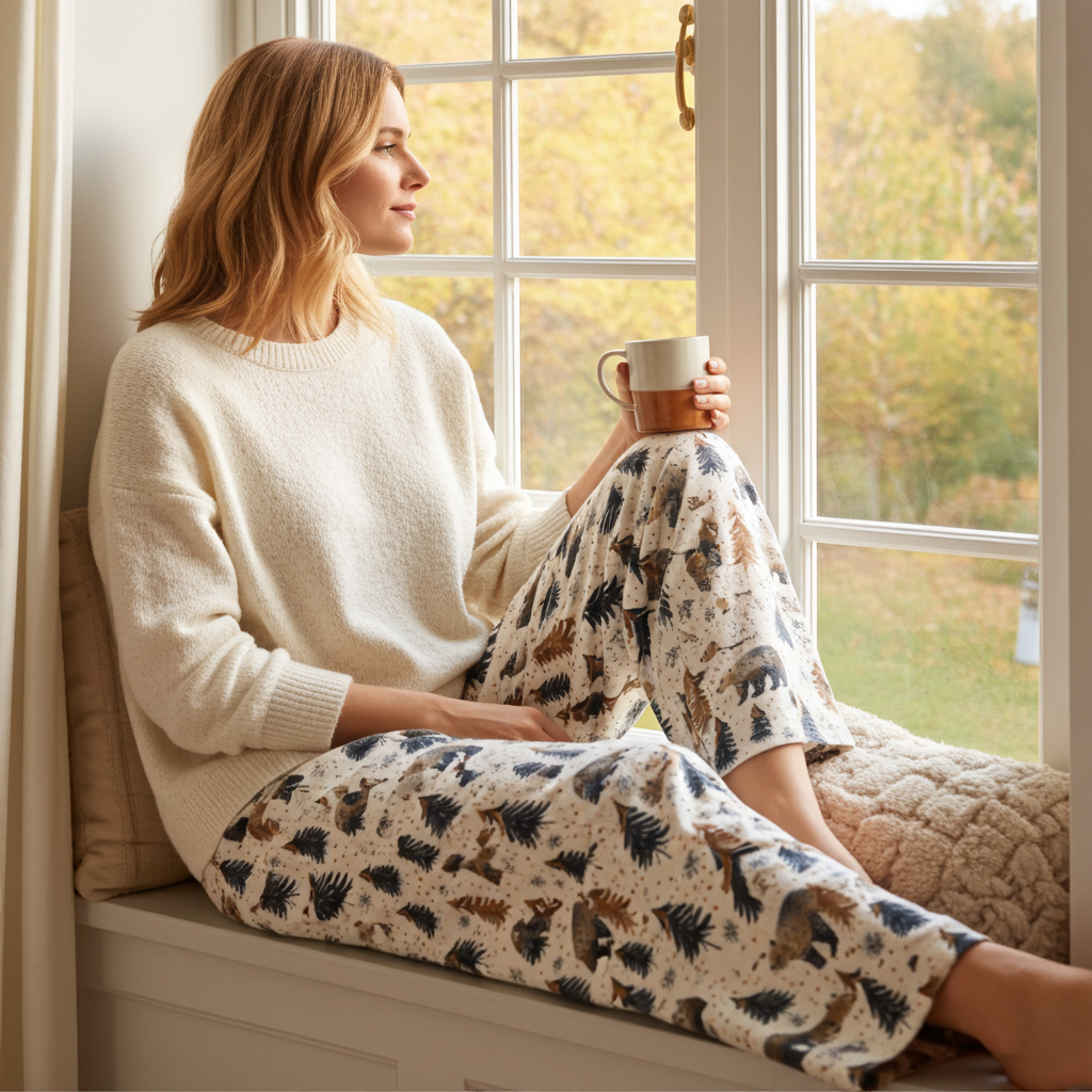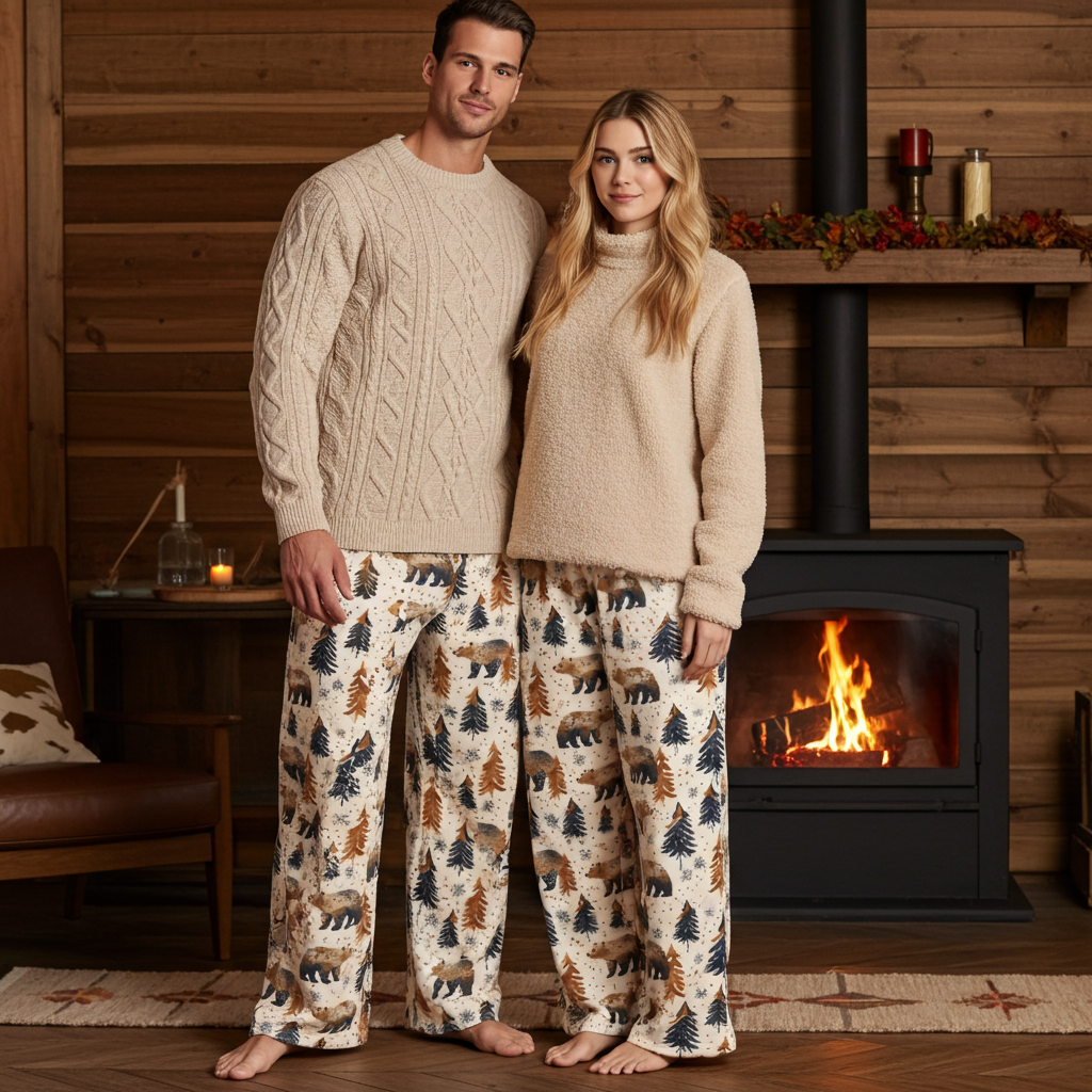 Wear as matching couples pajamas, too! When Mama Bear and Papa bear need a cabin vacation, these matching bear print pajamas are the perfect packable item for those fall and winter getaways. Get the comfort of pajamas in this stylish pair of wide-leg pants. With the adjustable waist and a smooth, comfortable stretchy fabric, it’s like your favorite sweatpants but better.