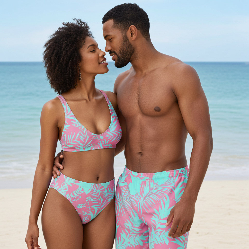 Couples matching swimwear? Yes! It’s easy to fall in love with this matching bikini set and swim trunks! Features a fresh, vintage floral print that is saltwater-friendly and chlorine safe. From honeymoon to babymoon and every couple's beach getaway in between.