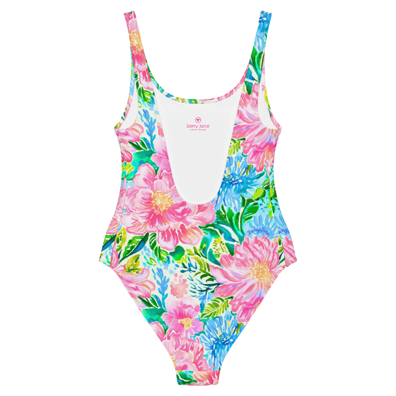 Women's One-Piece Swimsuit, Preppy Spring Floral Mix