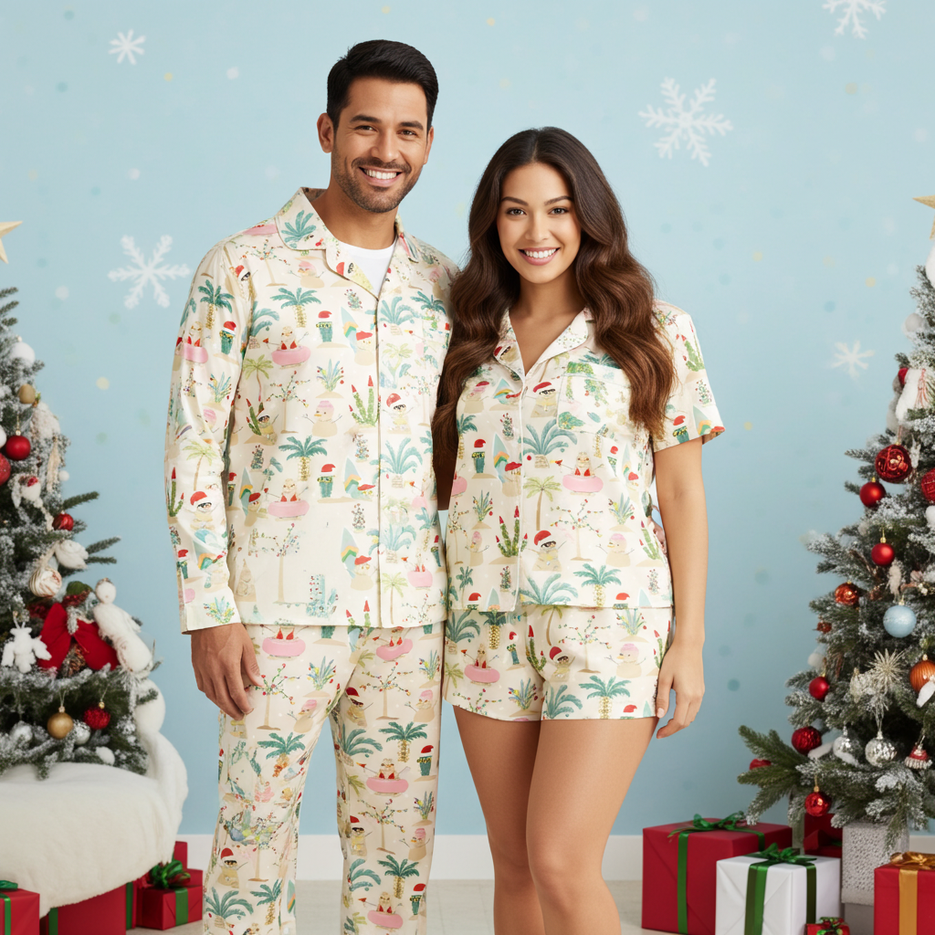 Whether you’re sipping coffee on the lanai, enjoying a lazy Netflix day, or opening gifts under the palm tree, this pajama will bring tropical joy to your festivities.