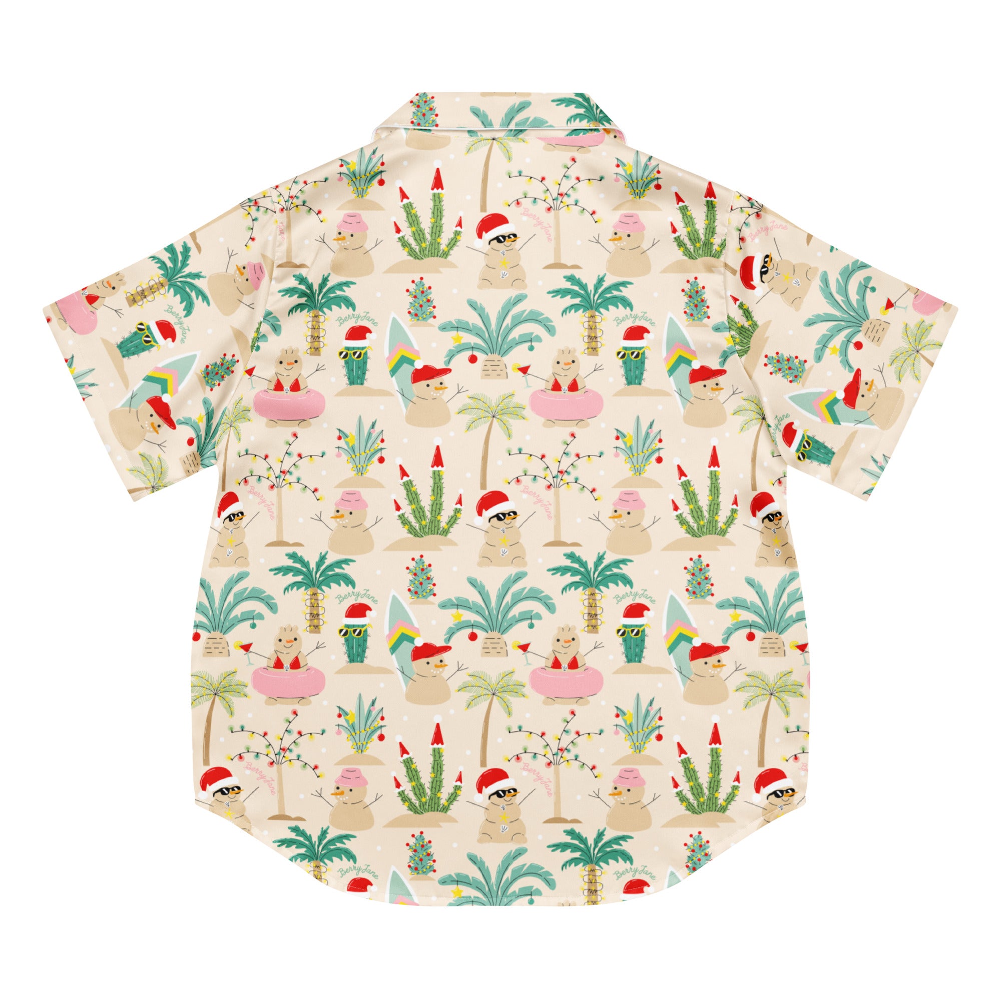 Bring island cheer to your holiday season with this women’s Christmas pajama top in a fun, beachy Hawaiian Mele Kalikimaka theme. Featuring tropical palms, festive details, and a dash of Hawaiian holiday spirit, it's perfect for warm-weather Christmas mornings or cozy nights in.