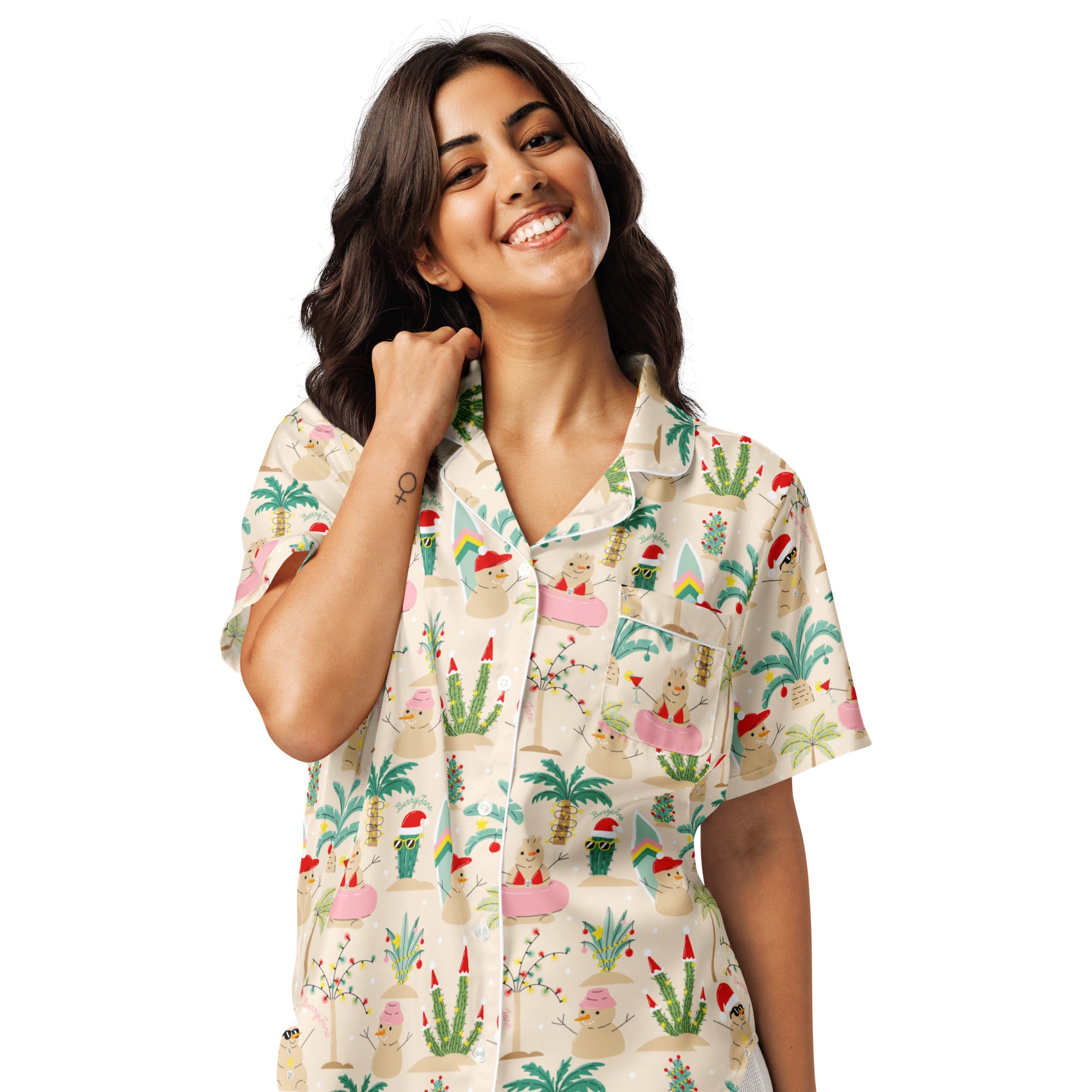 Women’s Christmas Short Sleeve Pajama Top – Hawaiian Beach Holiday Loungewear