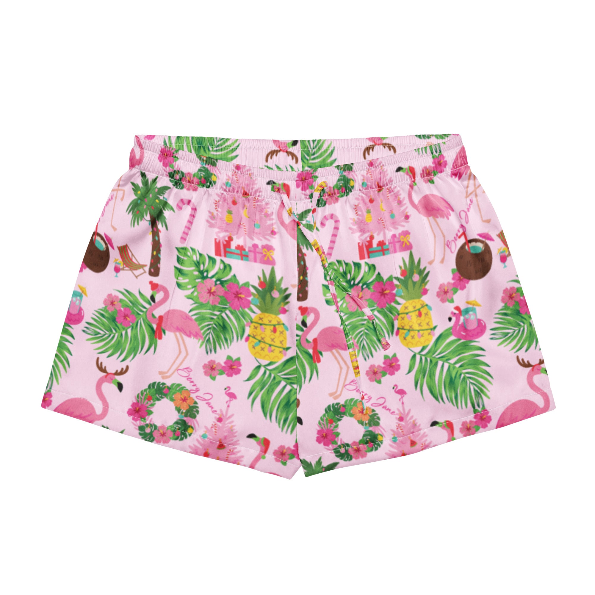 Women’s Pink Christmas Flamingo Beach Party Pajama Shorts