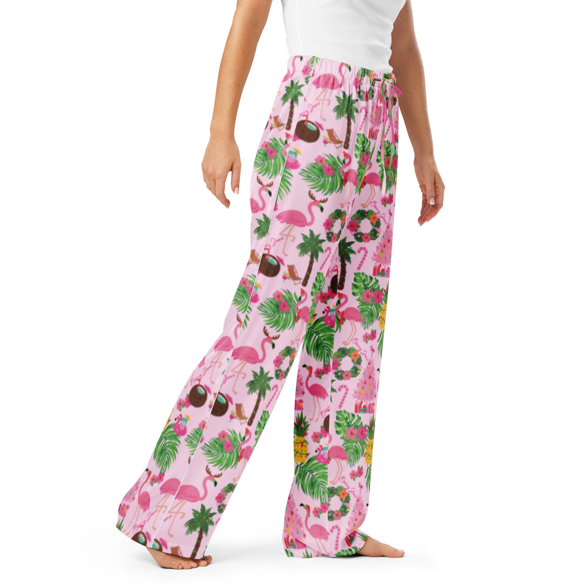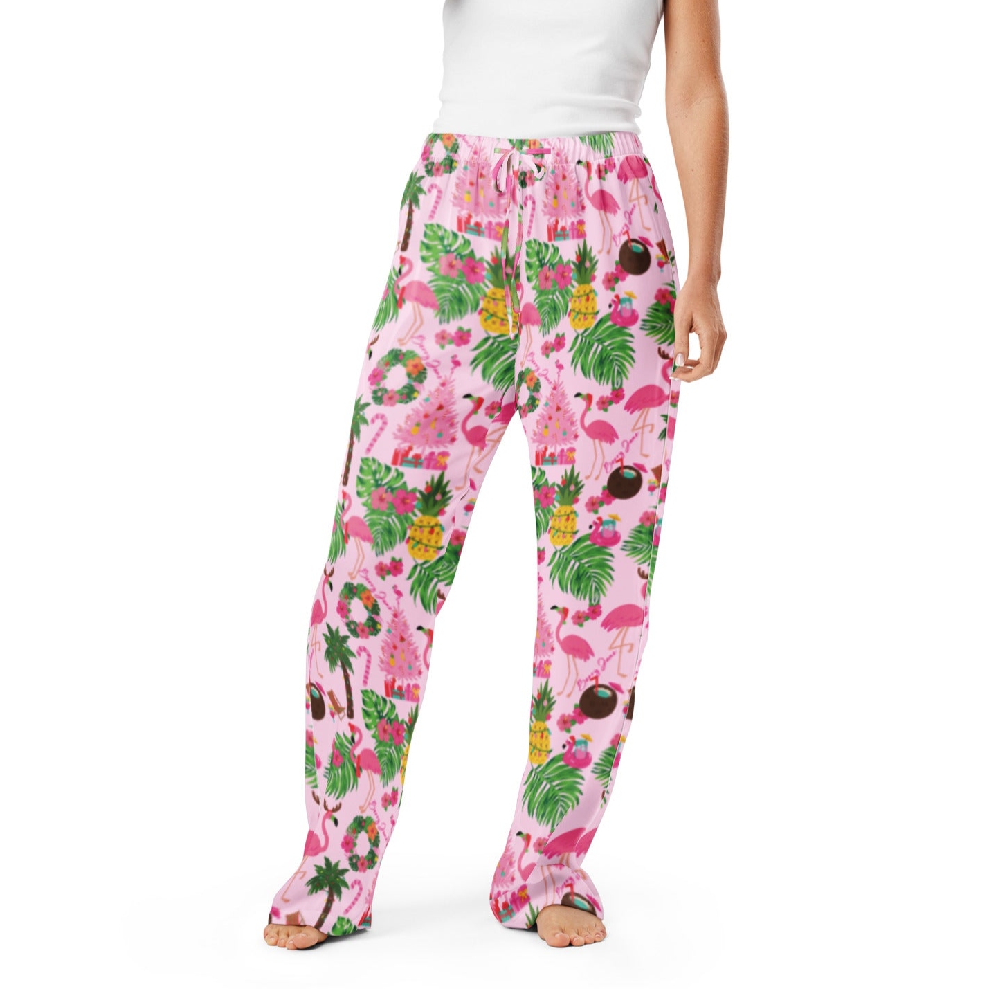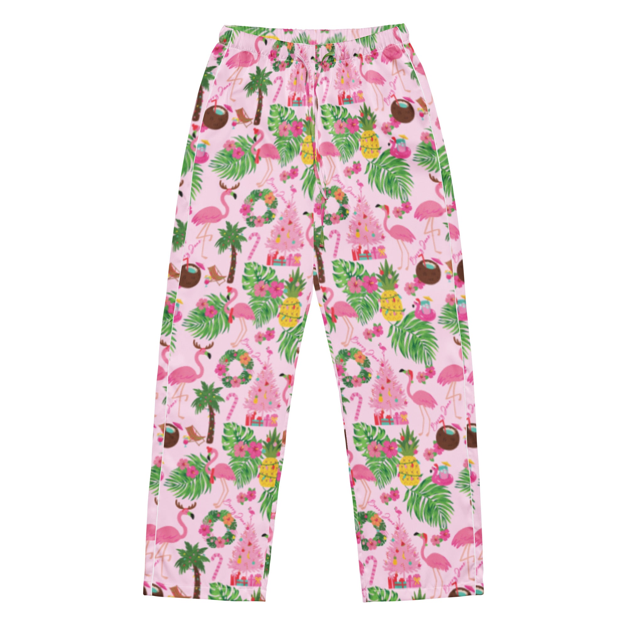 Women’s Pink Christmas Beach Pajama Pants – Flamingo Holiday Print