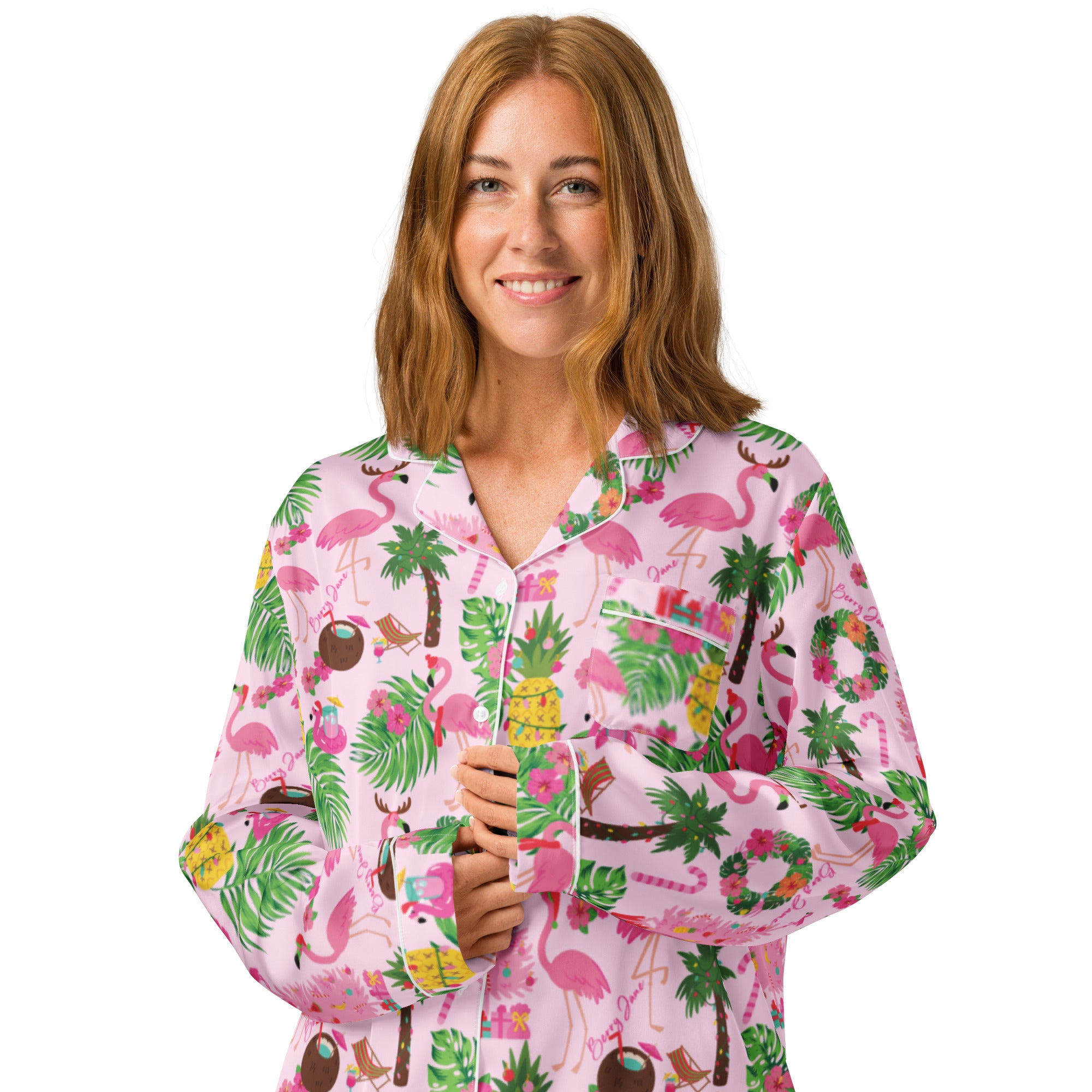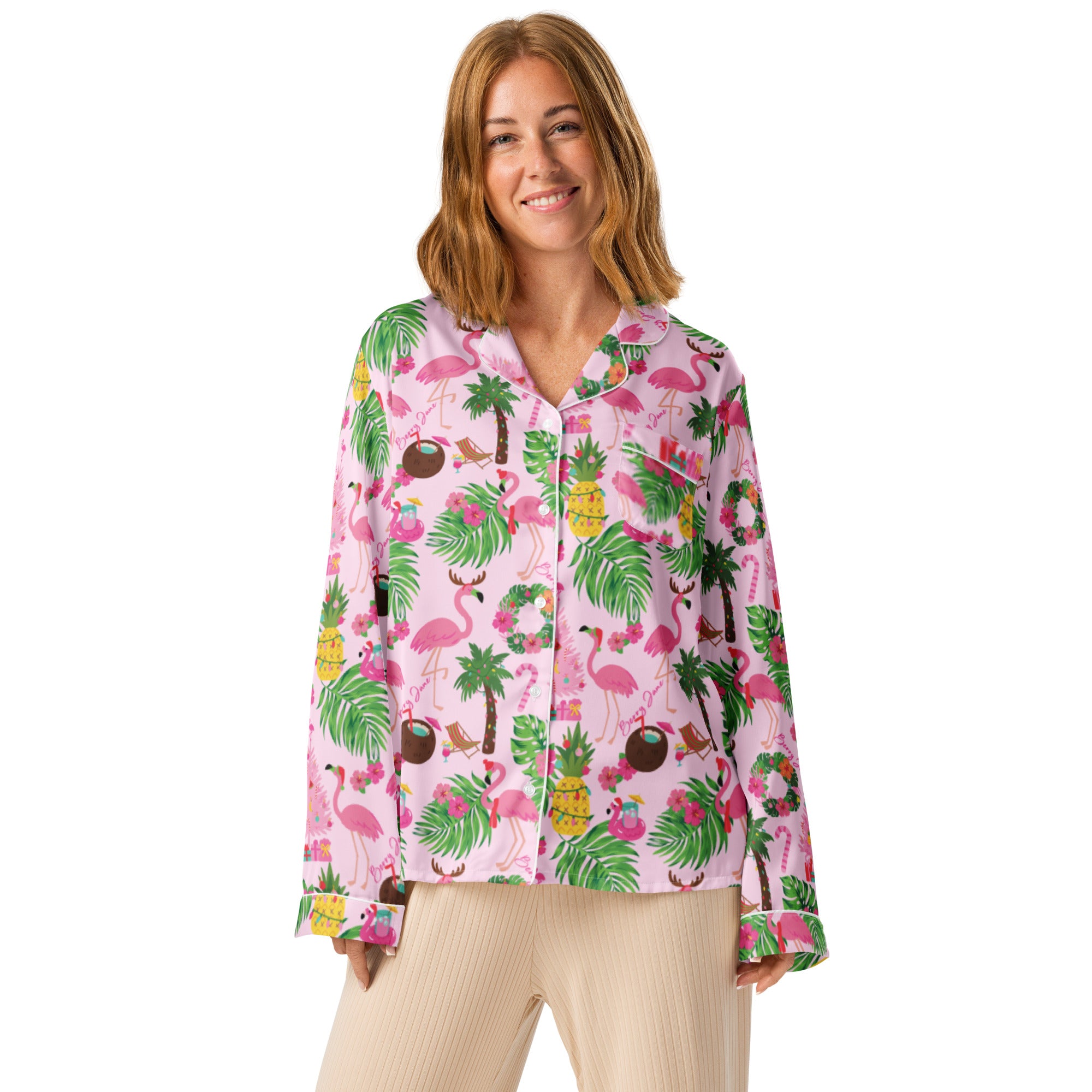 Women’s Pink Christmas Pajama Top – Flamingo Beach Party Holiday Shirt