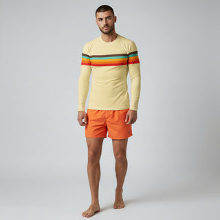 Men's Vintage Style 70s Stripe Rash Guard, UPF 40+, Light Yellow