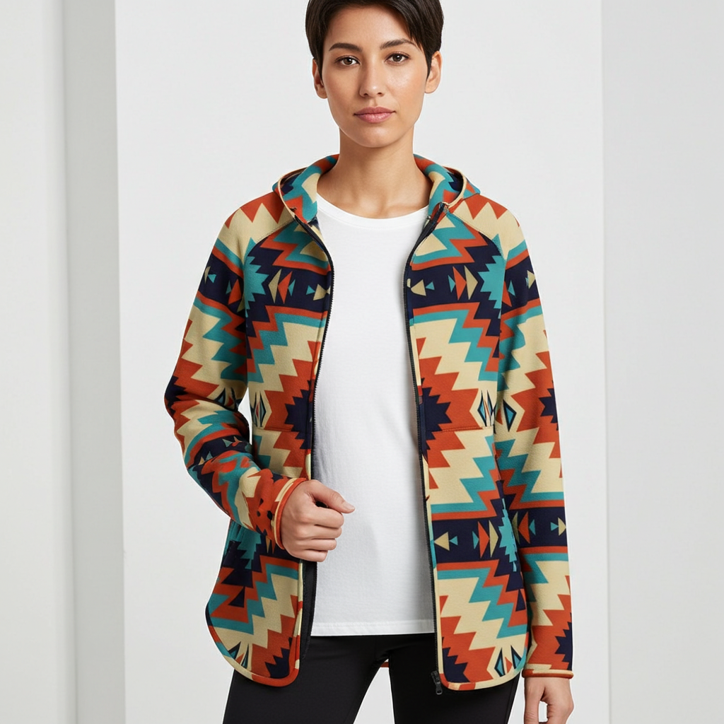 Women’s Southwestern Fleece Hoodie Shacket Layering Jacket – Cozy Western Style