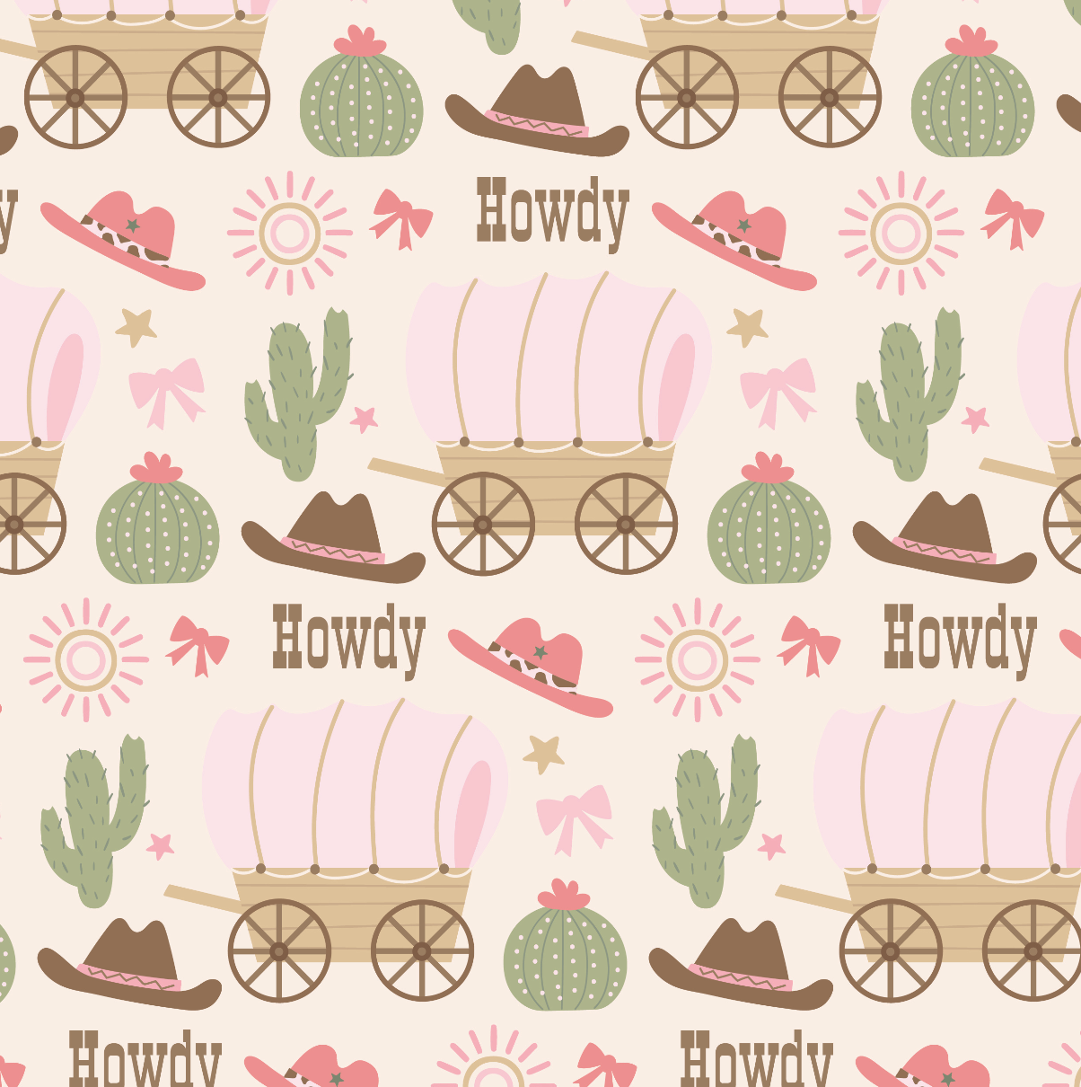 Women's 2-Piece Pajama Set - perfect for western girls with love a cute and fun country aesthetic. Featuring pastel cowboy hats, cactus, and Howdy print, these pajamas are soft breathable jersey and lightweight.