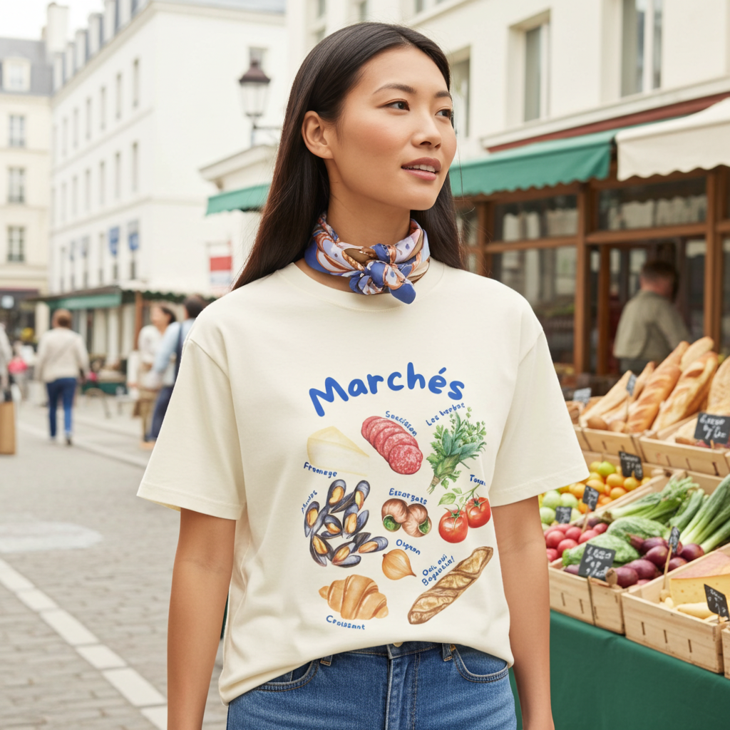 French Farmers Market T-Shirt – Marchés de Provence | Garment-Dyed Cotton Tee
