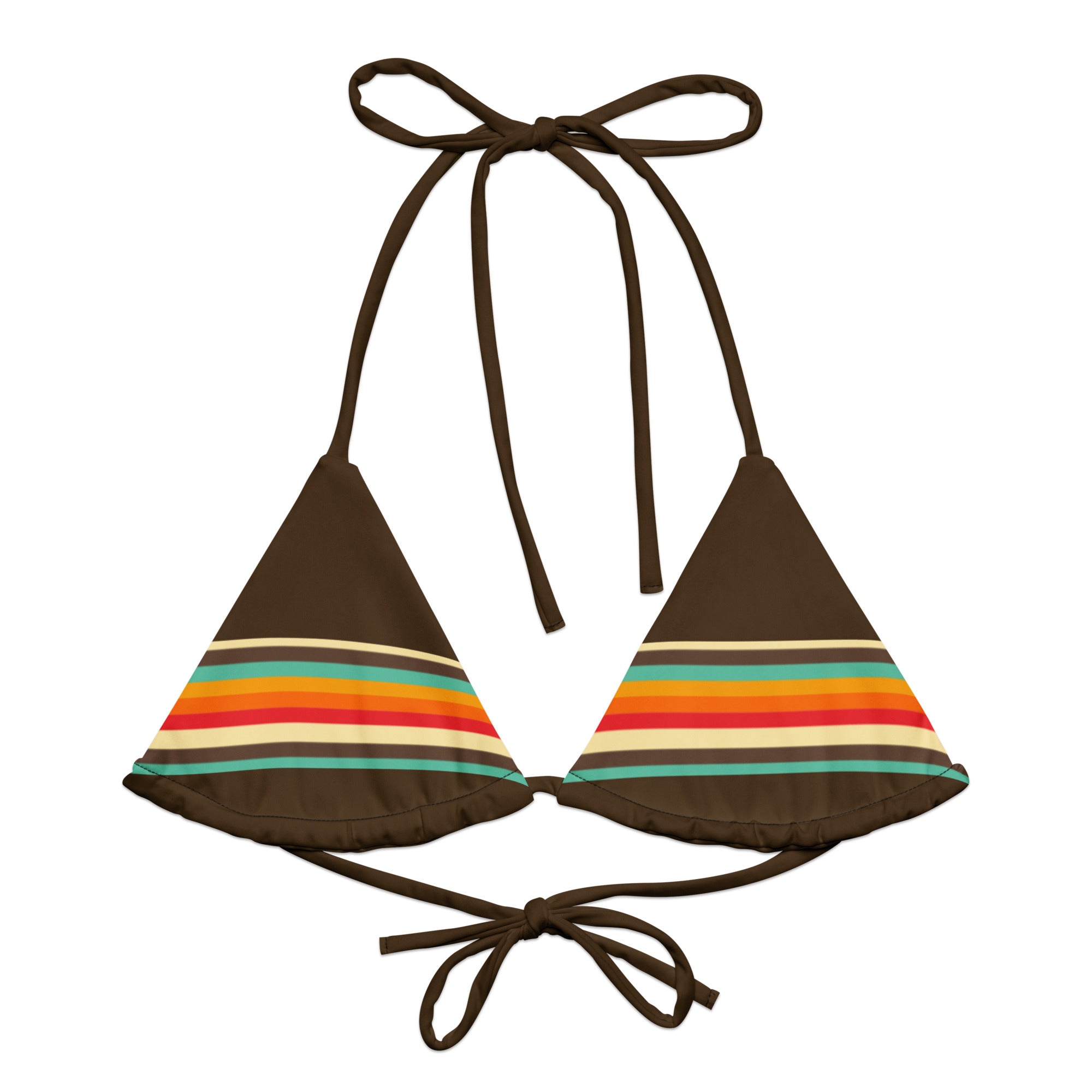 Dark Brown, 70s Stripe Recycled Fabric Bikini Top