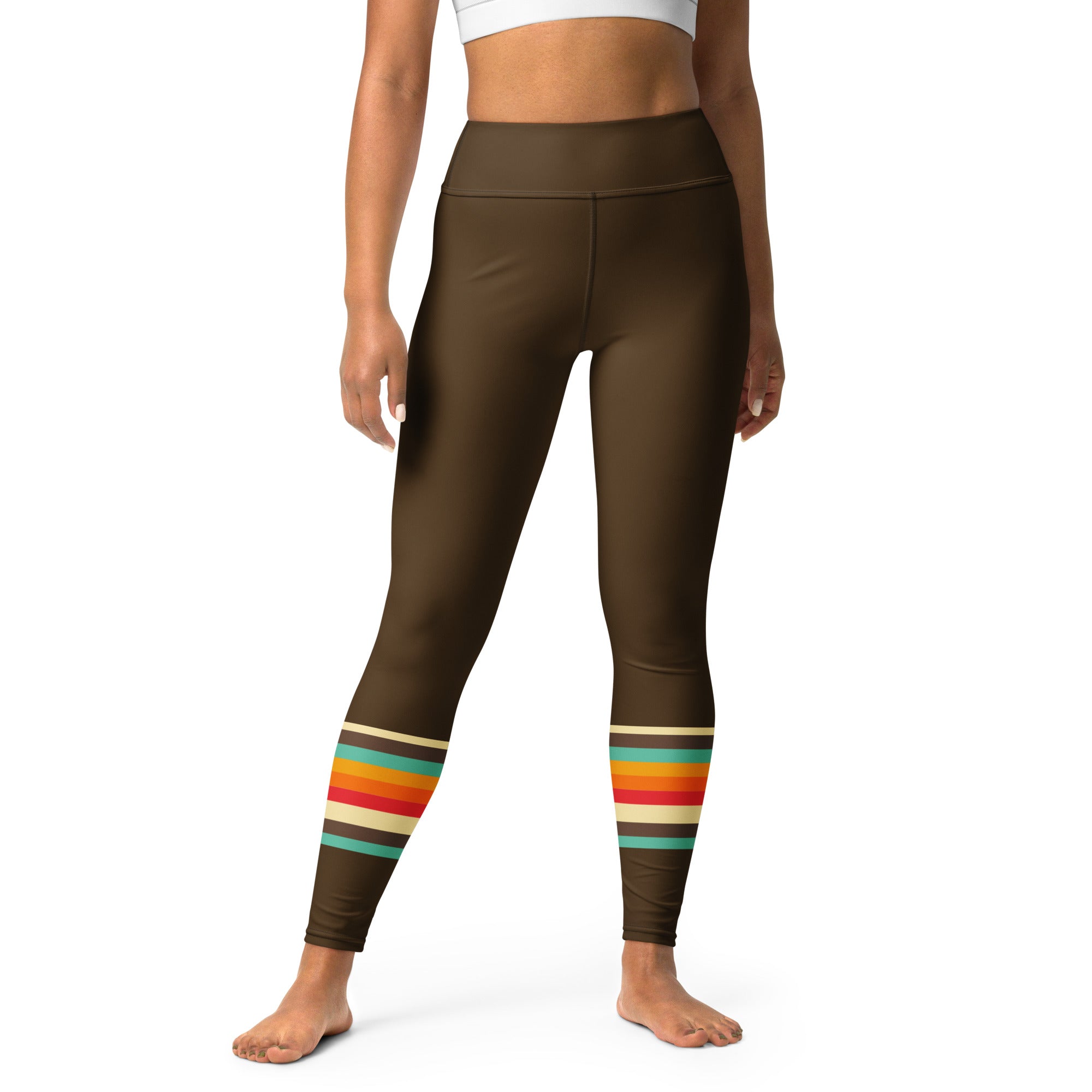 Women's 70s Vintage Stripe UPF 50 Swim Leggings - Brown