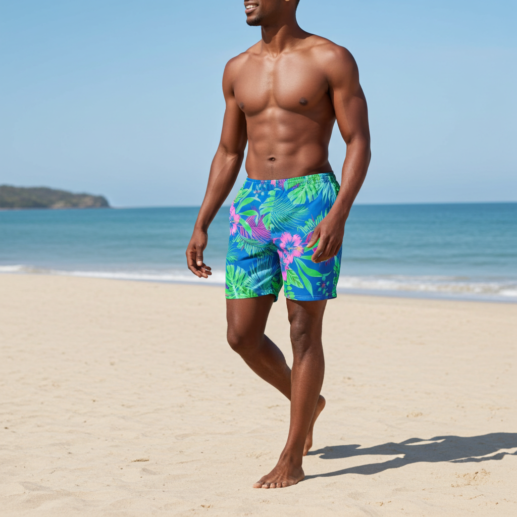 Men's 6.5" UPF 50 Swim trunks, Electric Blue Floral